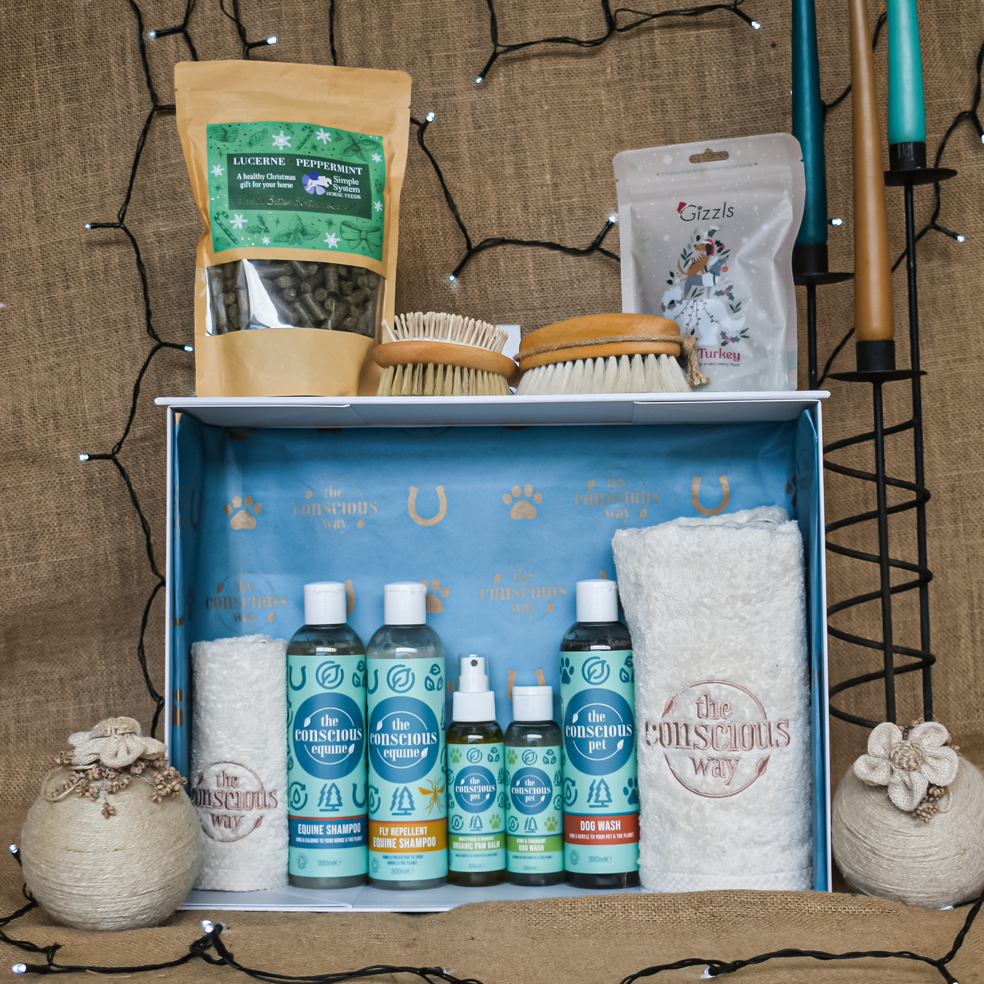 A limited-edition Christmas box filled with organic grooming essentials, festive treats, and handcrafted tools—for dogs, horses, and the humans who care for them. Thoughtfully curated. Beautifully boxed. Ready to delight.
